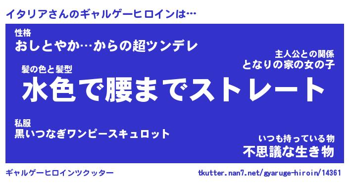 | ファンタジー風あだ名 | 『イタフェル』『エターナルイタリアー』 |