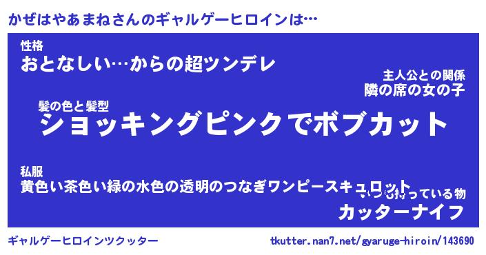 | 女子向けラノベタイトル風あだ名 | 『(仮)かぜはやあまねのやんごとなき事情』 |