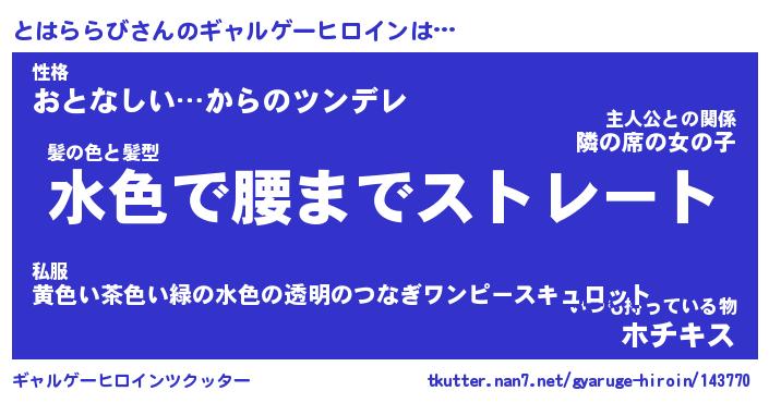 | 男性向けラノベタイトル風あだ名 | 『とはららびの憂鬱』 |