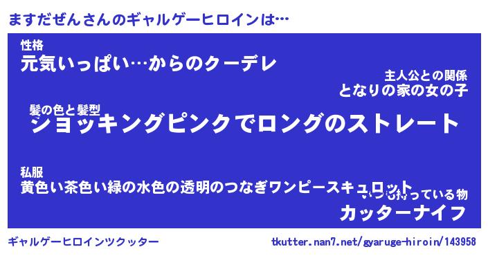 | 女子向けラノベタイトル風あだ名 | 『(仮)ますだぜんのやんごとなき事情』 |