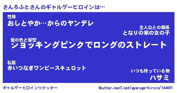 | 男性向けラノベタイトル風あだ名 | 『さんろふとの憂鬱』 |