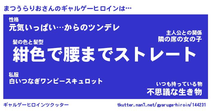 | 女子向けラノベタイトル風あだ名 | 『誰かこのまつうらりおを説明してください! ~契約から始まるウェディング~』 |