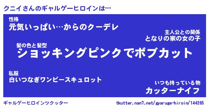 | 男性向けラノベタイトル風あだ名 | 『クニイの憂鬱』 |