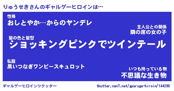 | 男性向けラノベタイトル風あだ名 | 『りゅうせきの憂鬱』 |