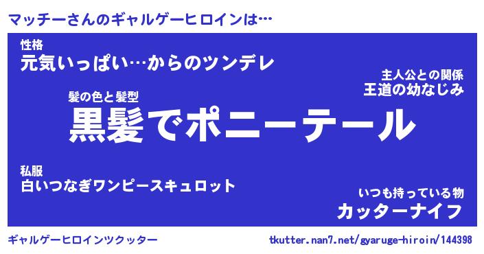 | 女子向けラノベタイトル風あだ名 | 『(仮)マッチーのやんごとなき事情』 |