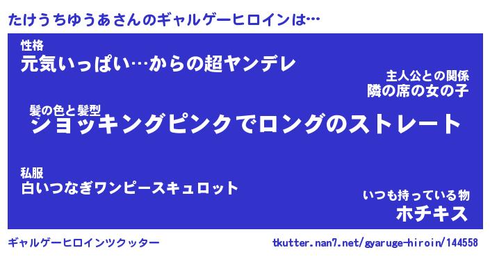 | 女子向けラノベタイトル風あだ名 | 『(仮)たけうちゆうあのやんごとなき事情』 |