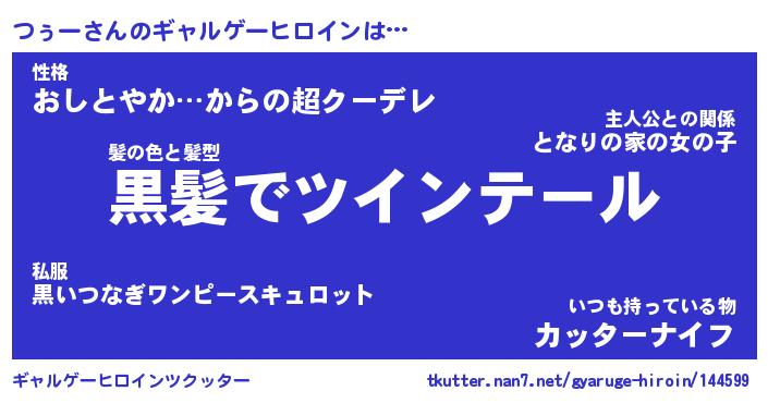 | 女子向けラノベタイトル風あだ名 | 『(仮)つぅーのやんごとなき事情』 |