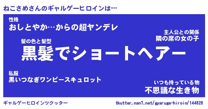 | 自動車の名前っぽいあだ名 | 『プリネコ』『ネクア』『デミネ』 |
