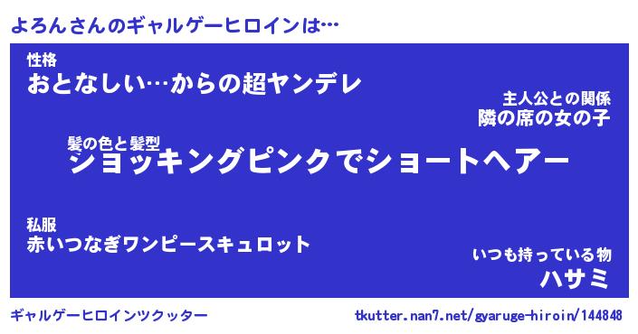 | 女子向けラノベタイトル風あだ名 | 『(仮)よろんのやんごとなき事情』 |