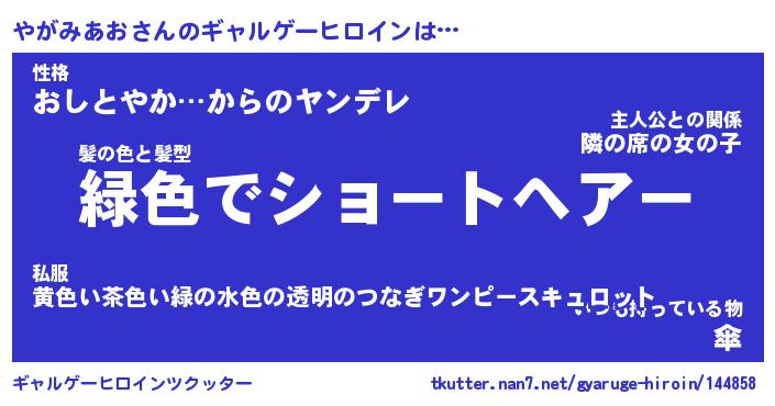 | ファンタジー風あだ名 | 『ヤガフェル』『エターナルヤガミアオー』 |