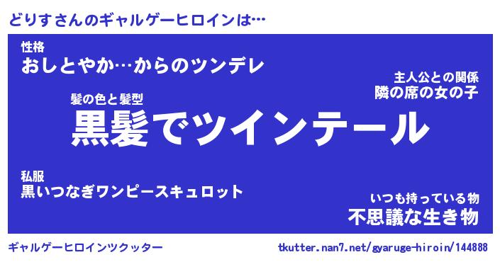 | 男性向けラノベタイトル風あだ名 | 『どりすの憂鬱』 |