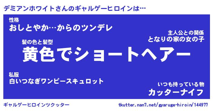 | 男性向けラノベタイトル風あだ名 | 『デミアンホワイトアートオンライン』 |