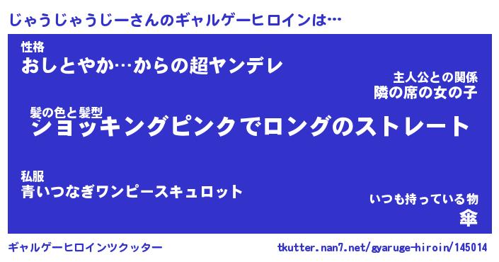| 女子向けラノベタイトル風あだ名 | 『(仮)じゃうじゃうじーのやんごとなき事情』 |