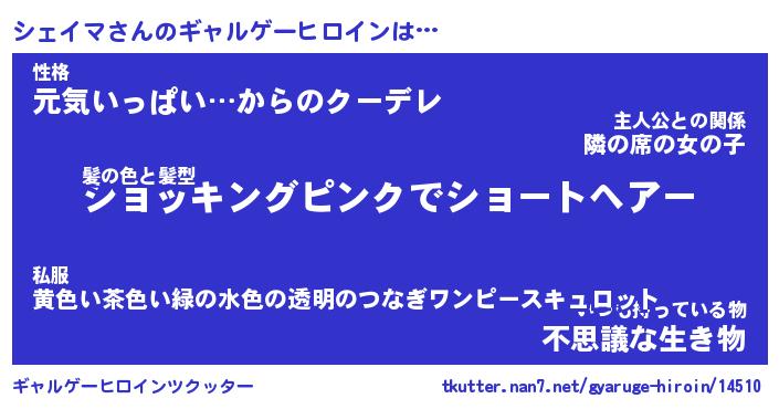| 意味不明あだ名 | 『ペロリンシェイマ』『永久保存シェイマ』 |