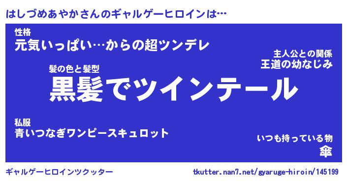 | 男性向けラノベタイトル風あだ名 | 『はしづめあやかの憂鬱』 |