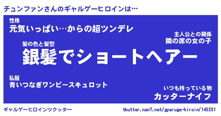 | 男性向けラノベタイトル風あだ名 | 『チュンファンの憂鬱』 |