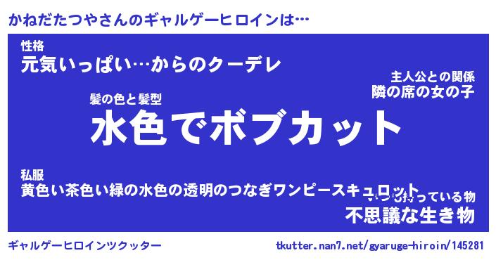 | 女子向けラノベタイトル風あだ名 | 『(仮)かねだたつやのやんごとなき事情』 |