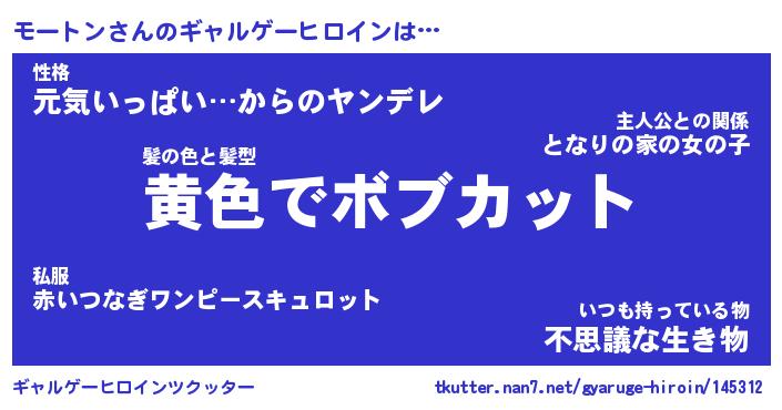 | 意味不明あだ名 | 『ペロリンモートン』『永久保存モートン』 |