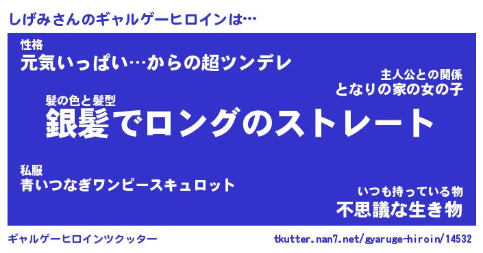 | 男性向けラノベタイトル風あだ名 | 『しげみの憂鬱』 |