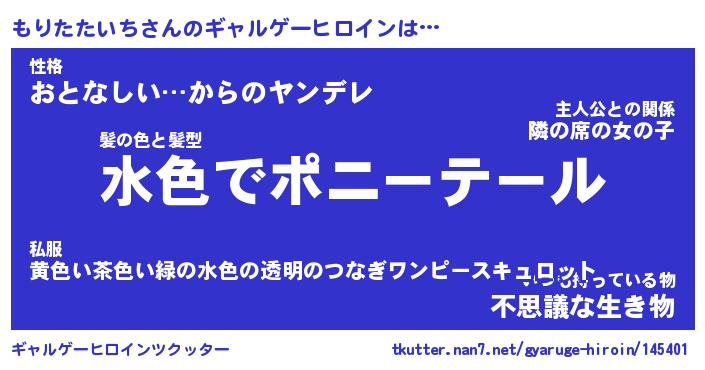 | 男性向けラノベタイトル風あだ名 | 『もりたたいちの憂鬱』 |