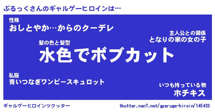 | 男性向けラノベタイトル風あだ名 | 『ぶるっくの憂鬱』 |
