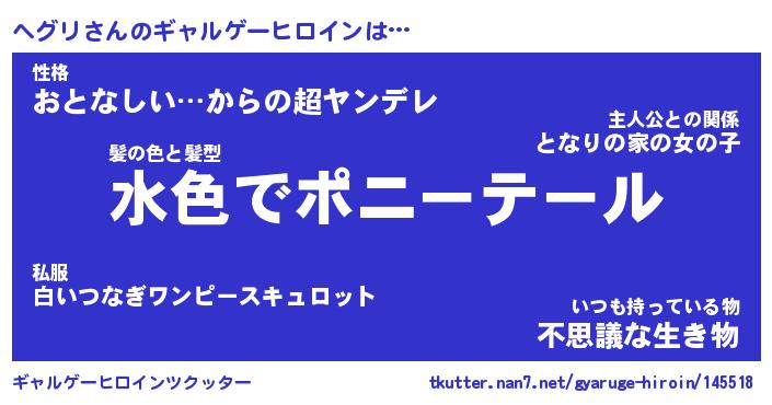 | 男性向けラノベタイトル風あだ名 | 『ヘグリの憂鬱』 |