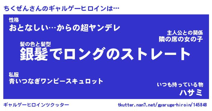 | ファンタジー風あだ名 | 『チクフェル』『エターナルチクゼンー』 |