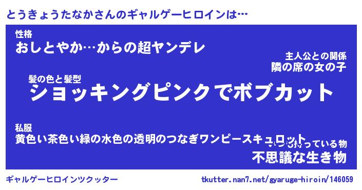 | 女子向けラノベタイトル風あだ名 | 『(仮)とうきょうたなかのやんごとなき事情』 |