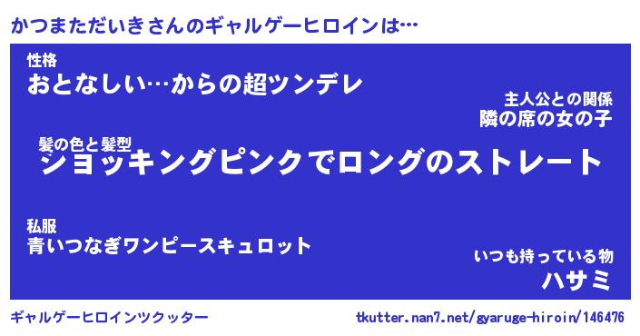 | 女子向けラノベタイトル風あだ名 | 『(仮)かつまただいきのやんごとなき事情』 |