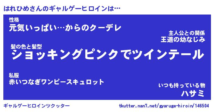 | 男性向けラノベタイトル風あだ名 | 『はれひめの憂鬱』 |
