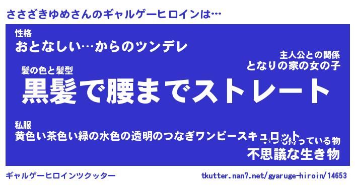 | 男性向けラノベタイトル風あだ名 | 『ささざきゆめの憂鬱』 |