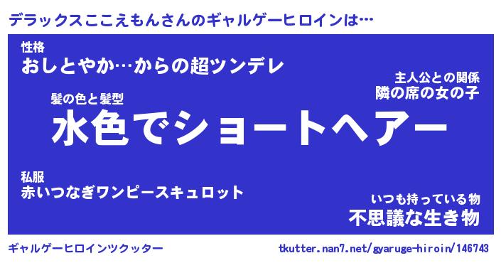| 女子向けラノベタイトル風あだ名 | 『(仮)デラックスここえもんのやんごとなき事情』 |