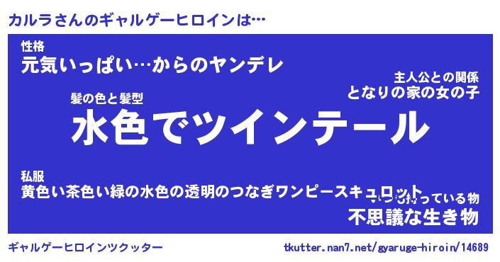 | ファンタジー風あだ名 | 『カルフェル』『エターナルカルラー』 |