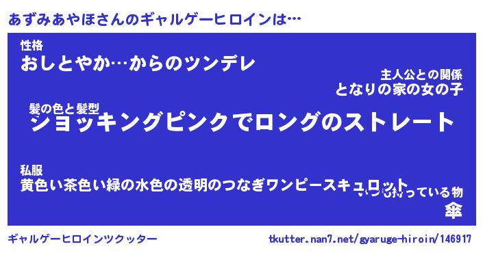 | ヘコむあだ名 | 『あずふぇ~』『つくし』『あずっ子』 |