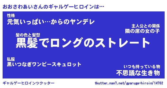 | 男性向けラノベタイトル風あだ名 | 『おおさわあいの憂鬱』 |