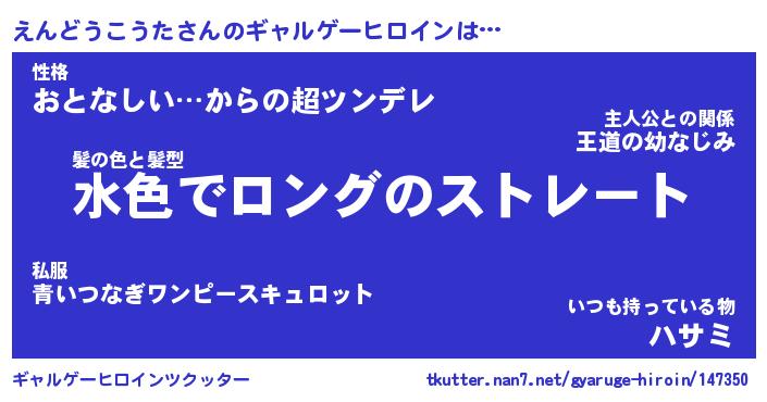 | 女子向けラノベタイトル風あだ名 | 『(仮)えんどうこうたのやんごとなき事情』 |