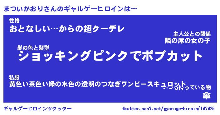 | ヒーロー風カッコイイあだ名 | 『スーパーマツイカオリ』『炎刃騎士マツ』 |
