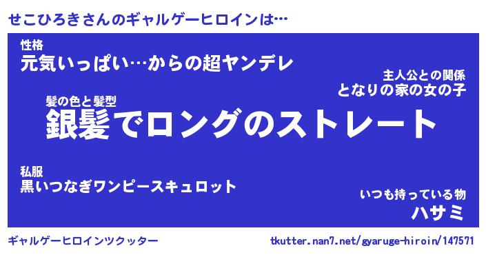 | 男性向けラノベタイトル風あだ名 | 『せこひろきの憂鬱』 |