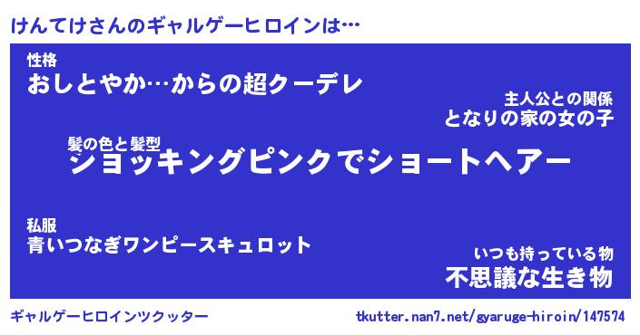 | 意味不明あだ名 | 『ペロリンけんてけ』『永久保存けんてけ』 |