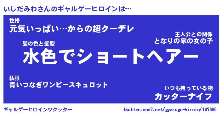 | ファンタジー風あだ名 | 『イシフェル』『エターナルイシダミワー』 |