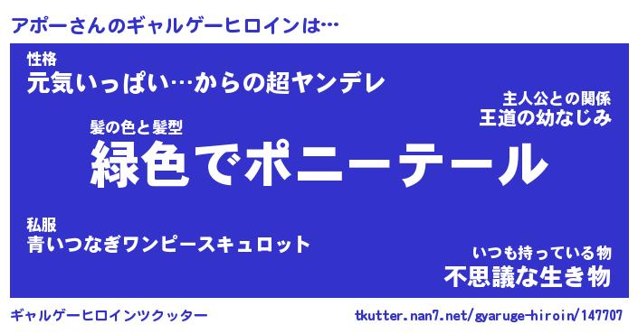 | ファンタジー風あだ名 | 『アポフェル』『エターナルアポーー』 |