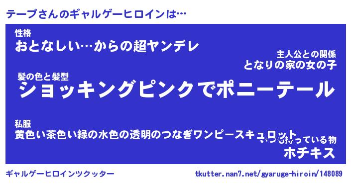 | 女子向けラノベタイトル風あだ名 | 『(仮)テープのやんごとなき事情』 |