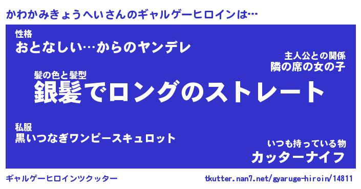 | 女子向けラノベタイトル風あだ名 | 『かわかみきょうへい姫と円卓の騎士』 |