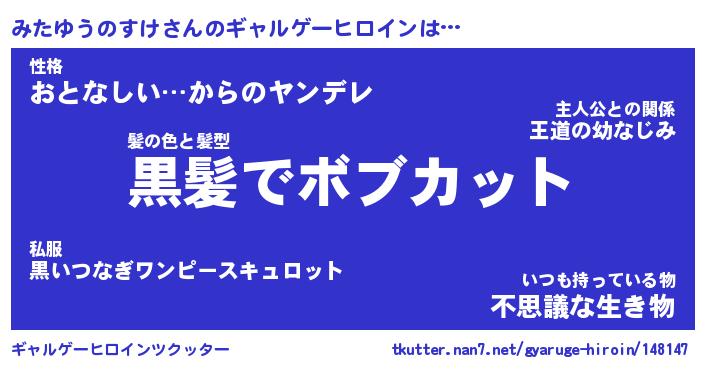 | 男性向けラノベタイトル風あだ名 | 『みたゆうのすけの憂鬱』 |