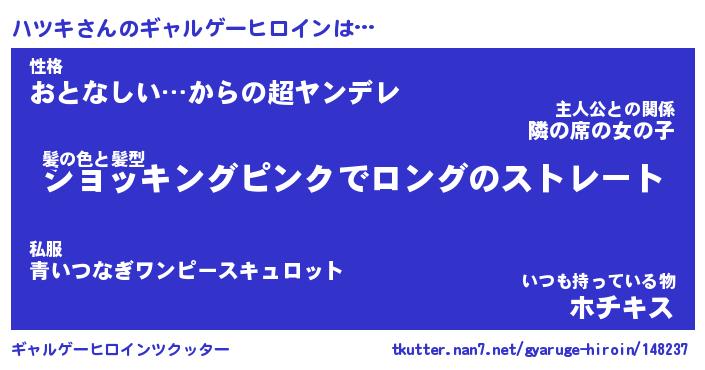 | ファンタジー風あだ名 | 『ハツフェル』『エターナルハツキー』 |