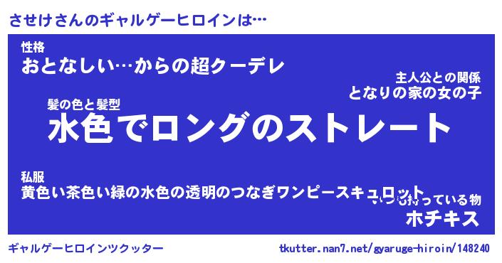 | 男性向けラノベタイトル風あだ名 | 『させけの憂鬱』 |