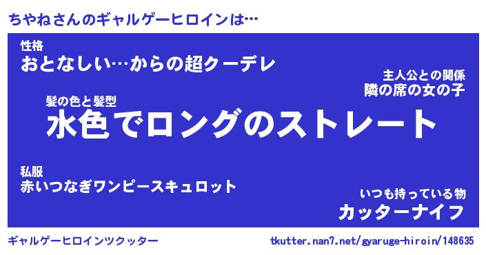 | ファンタジー風あだ名 | 『チヤフェル』『エターナルチヤネー』 |