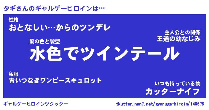 | 男性向けラノベタイトル風あだ名 | 『タギの憂鬱』『ノーゲーム・ノータギ』 |