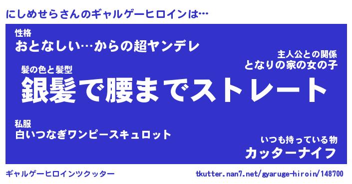 | ファンタジー風あだ名 | 『ニシフェル』『エターナルニシメセラー』 |