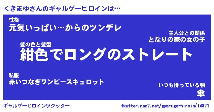 | ファンタジー風あだ名 | 『クキフェル』『エターナルクキマユー』 |